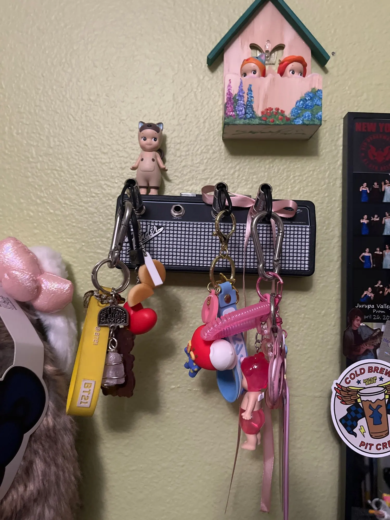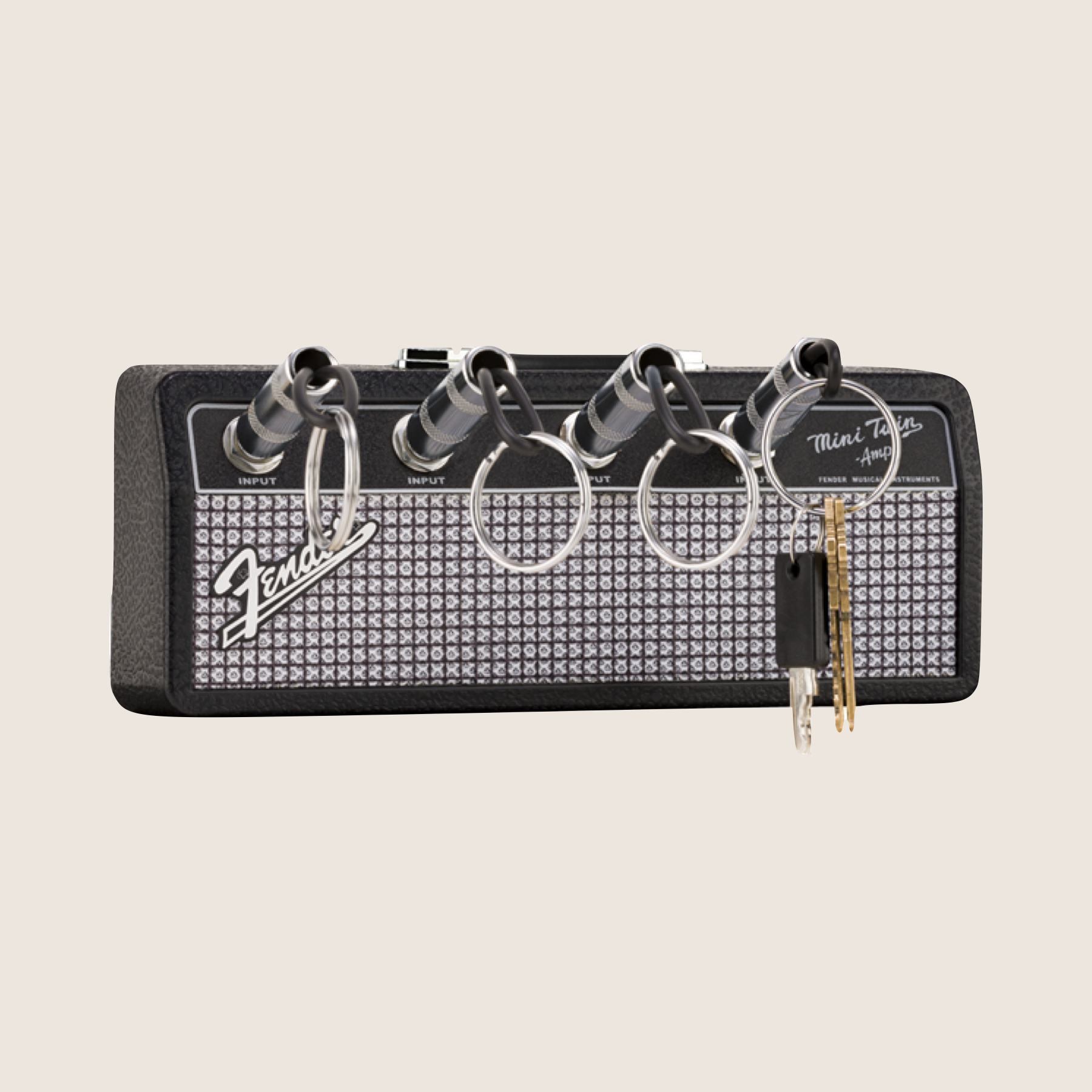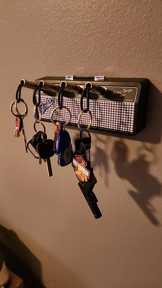 A wall-mounted key hanger designed to resemble a Marshall speaker, bringing both style and practicality to your space. It offers a unique way to organize your keys while enhancing your decor.